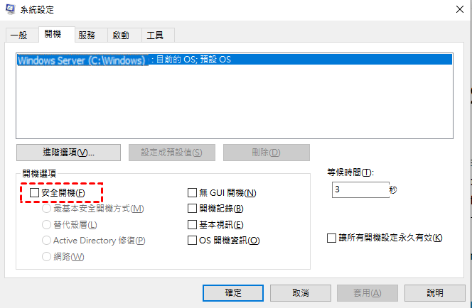 方法2. 通過設定啟用 Windows Server 2019 進入安全模式