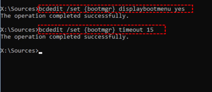 ● bcdedit /set {bootmgr} timeout 15