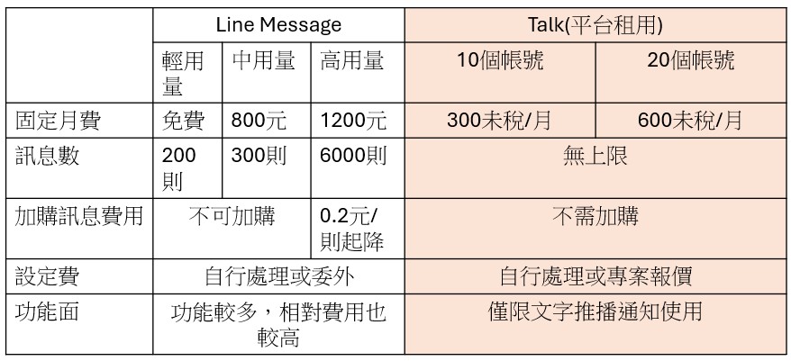 一張圖看懂!LINE Message vs Talk 平台