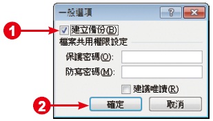 Step 3. 開啟 一般選項 對話方塊,勾選 建立備份 核取方塊,按【確定】鈕。